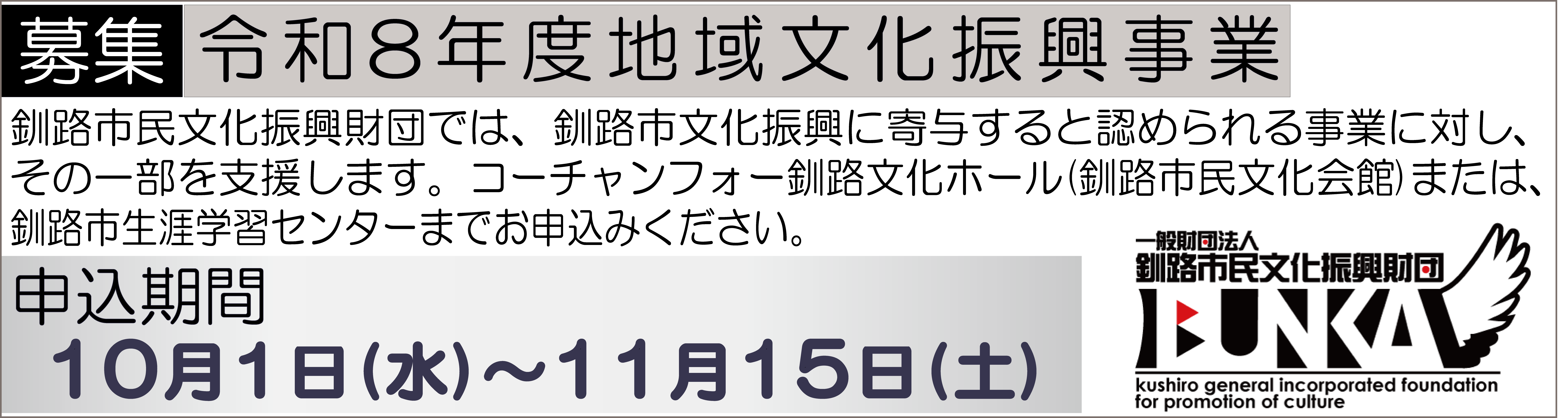 ▪お問合せ:(一財)釧路市民文化振興財団 TEL0154-24-5005(月曜休館日) - 2025-10-15
